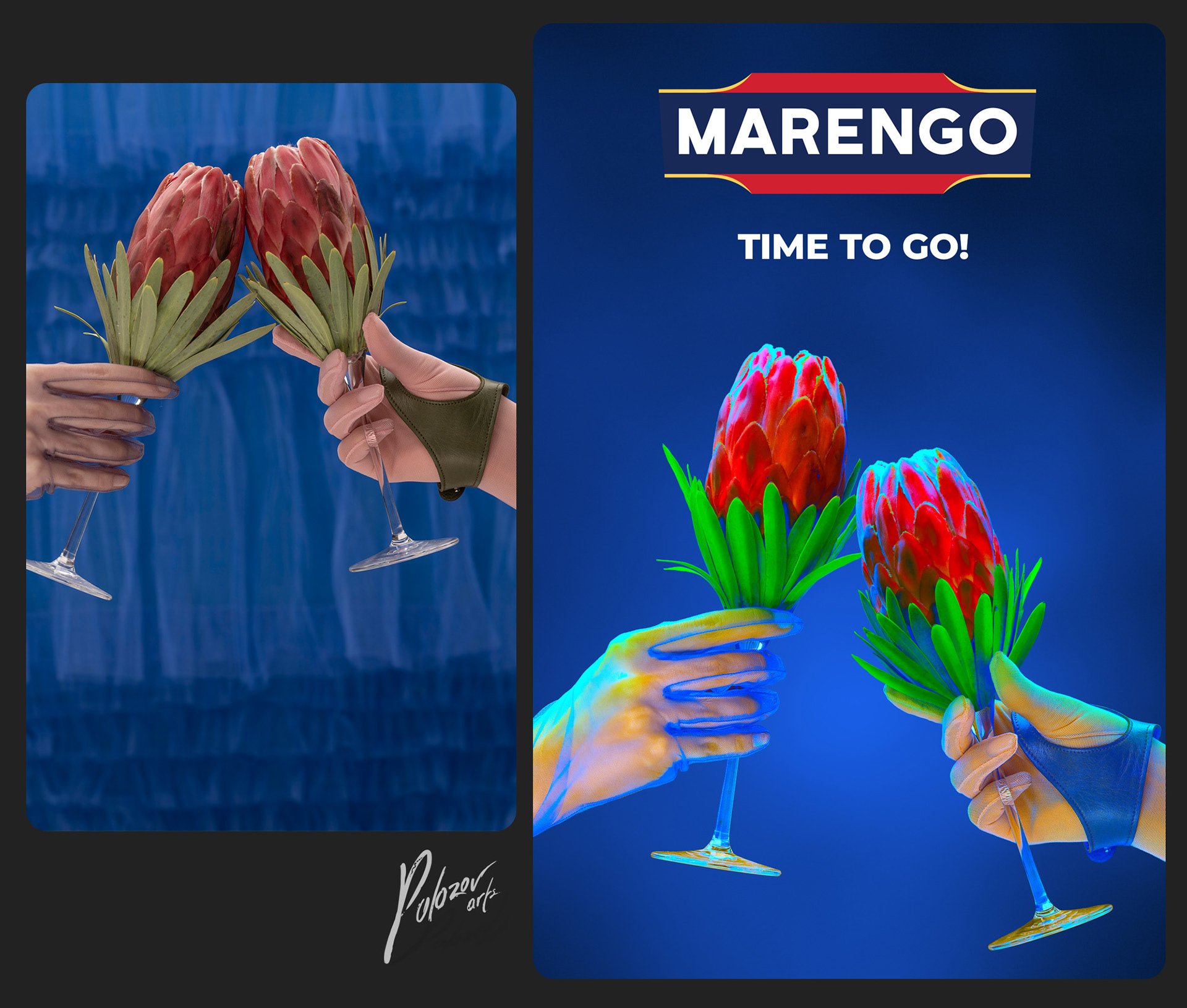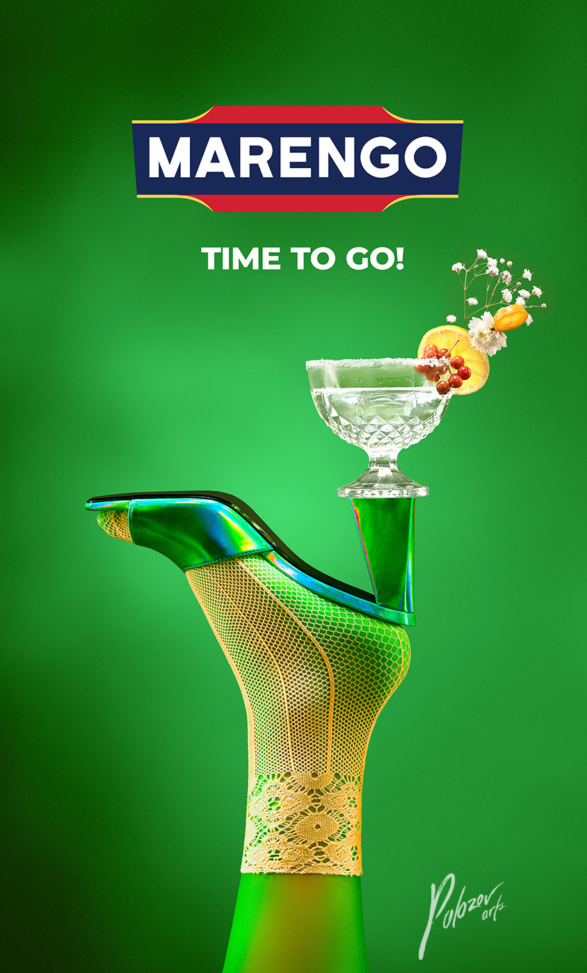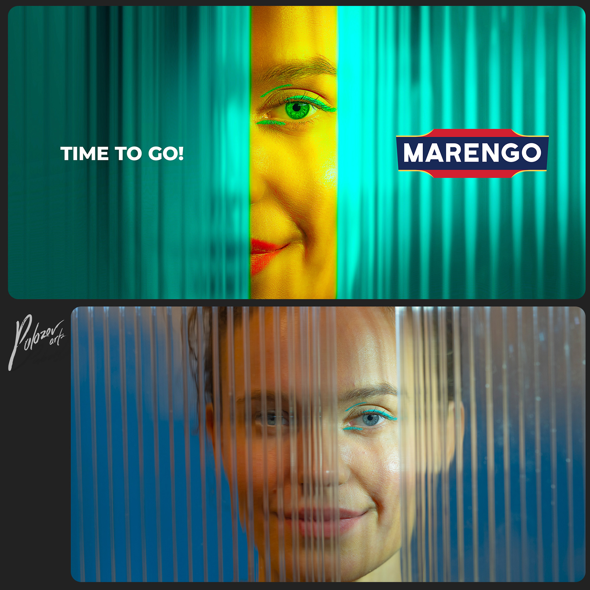 Bright neon colors advertising - creative retouching for Marengo brand by Polozov arts - background replacement, skin cleaning and color correction.